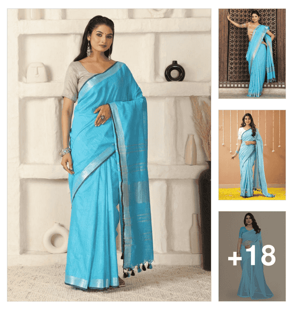 women solid with work embroidered saree with blouse