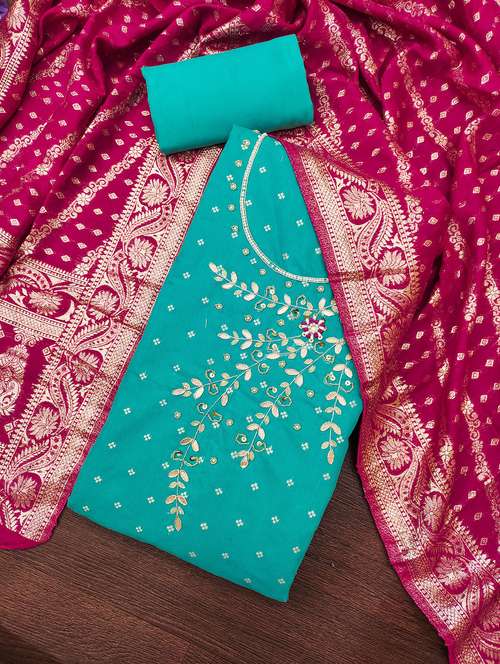 - Look ultra gorgeous in unstitched suits from Manvaa and grab these beautiful suits in sea green colour.