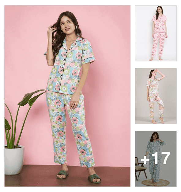women printed nightwear pyjama set