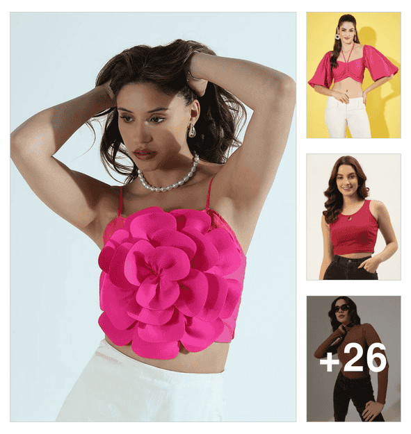 women pink floral printed crop top