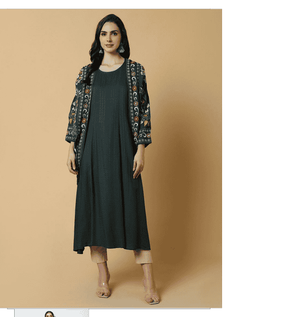women printed three quarter sleeve ethnic dress