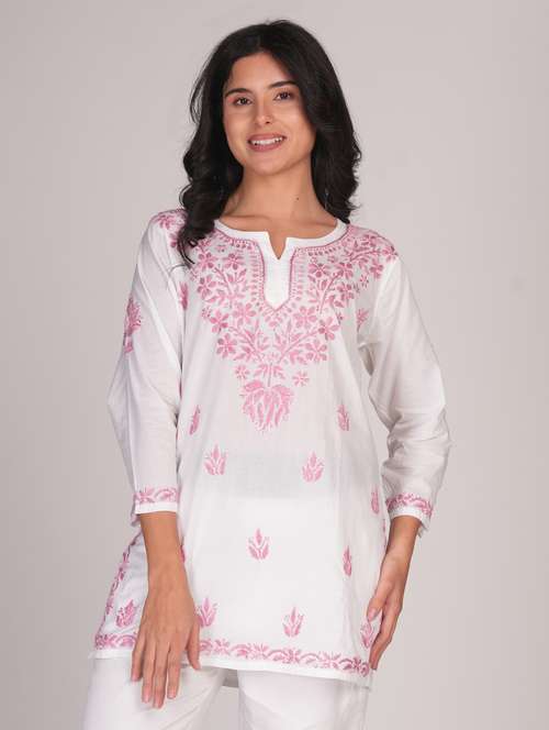 - » women notch neck chikankari straight kurti