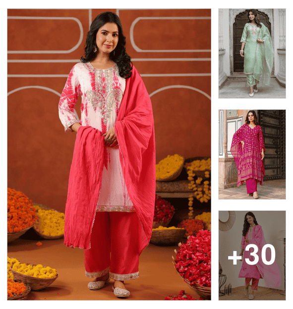 women solid with work three quarter sleeve kurta pant with dupatta set