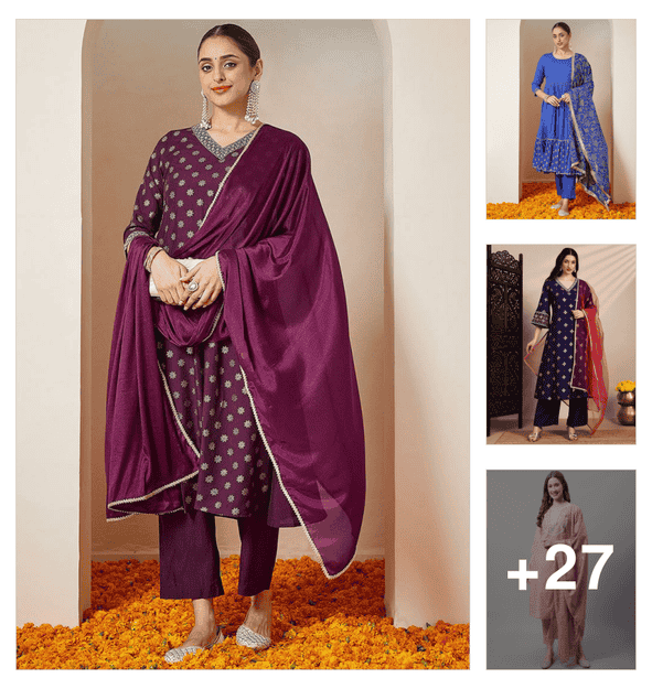 women solid with work three quarter sleeve kurta pant with dupatta set