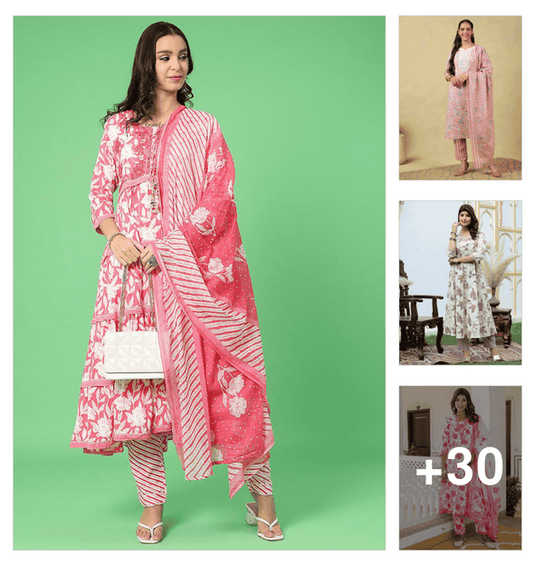 women floral three quarter sleeve kurta pant set