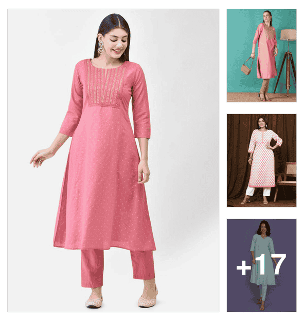 Powder Pink Embroidered Kurtas