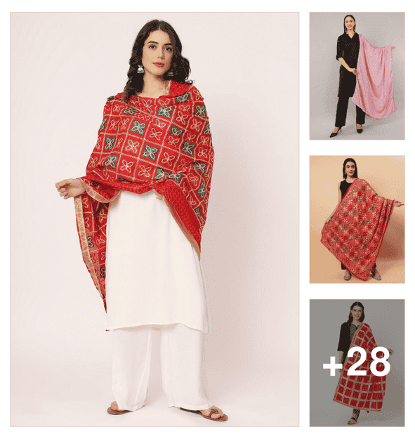 red leheriya print dupatta