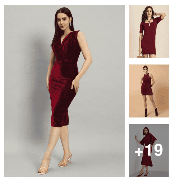 women maroon velvet bodycon dress