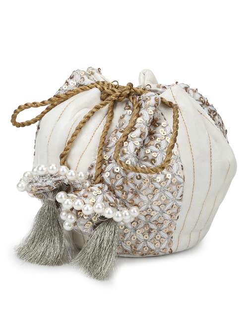 white cotton polyester blend ethnic potli