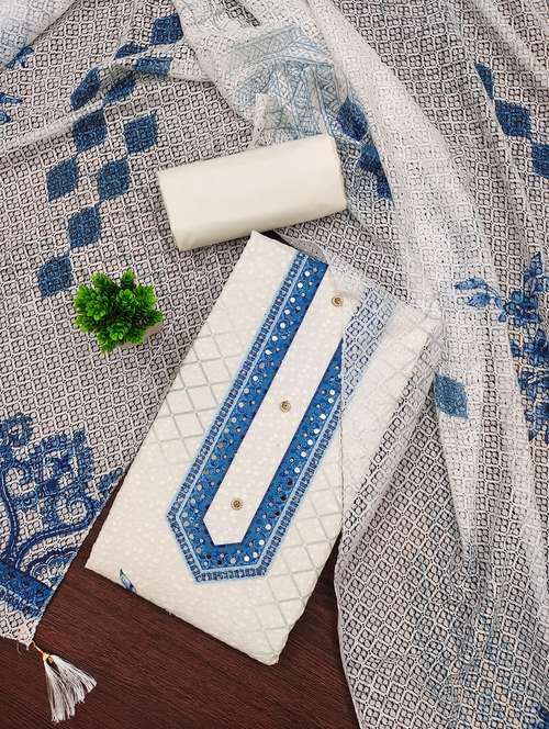 • Look ultra gorgeous in unstitched suits from Leeli Peeri Designer and grab these beautiful suits in white colour.