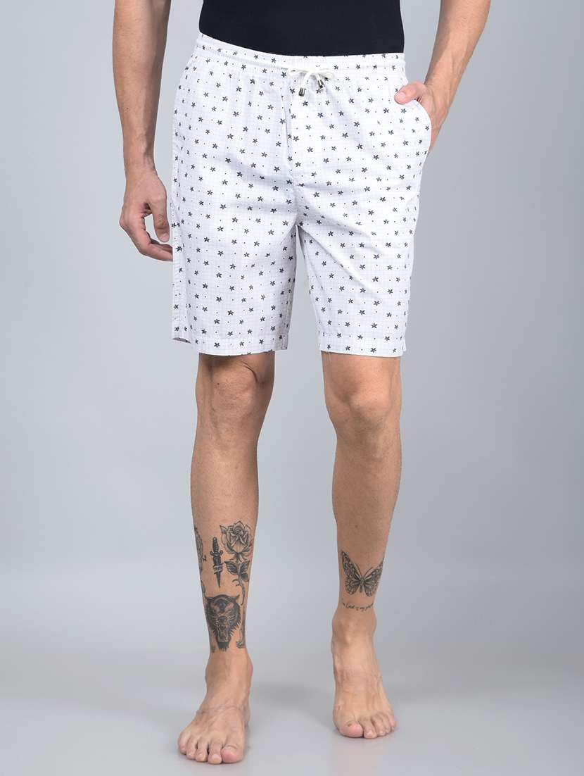 Crimsoune Club Men's White Floral Print 100% Cotton Lounge Shorts Redefines Fashion With Its Elegant Design And Unmatched Comfort.