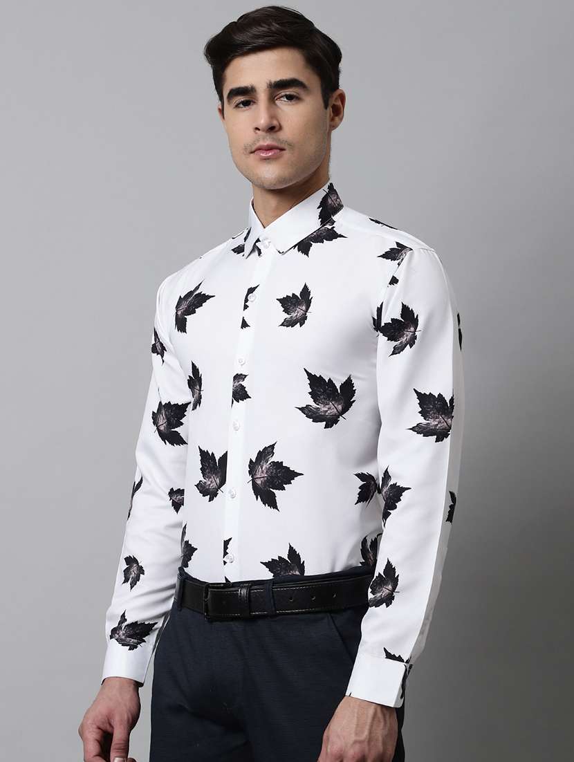 mens leaf print formal shirt