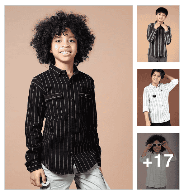 boys striped collared long sleeve shirt