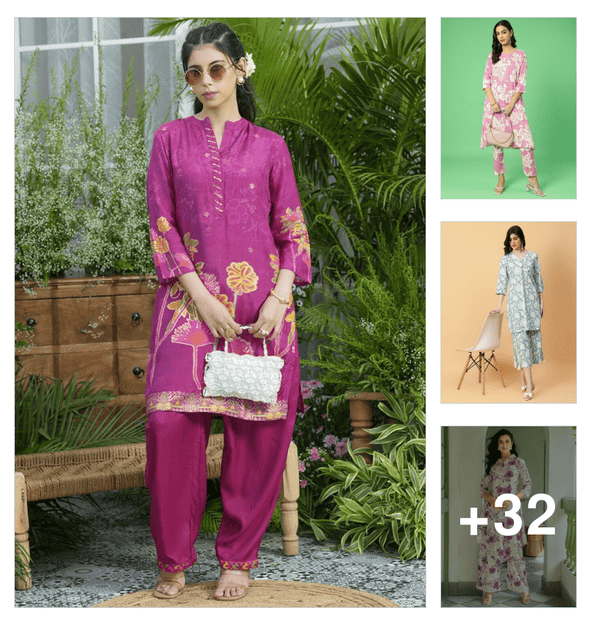 women floral three quarter sleeve kurta pant set