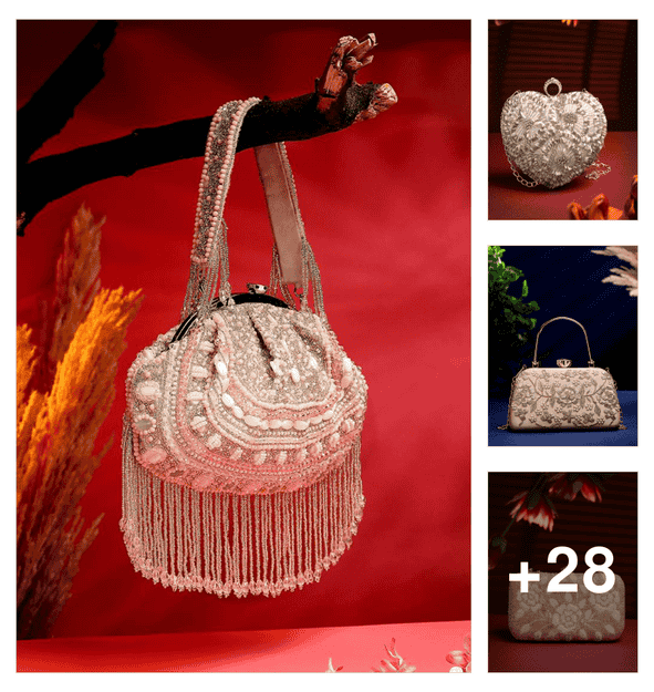 women embellished clutch with detachable sling chain