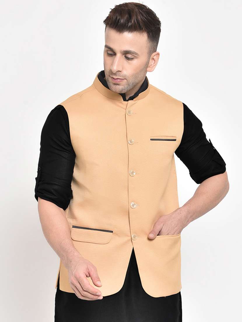 yellow solid nehru jacket