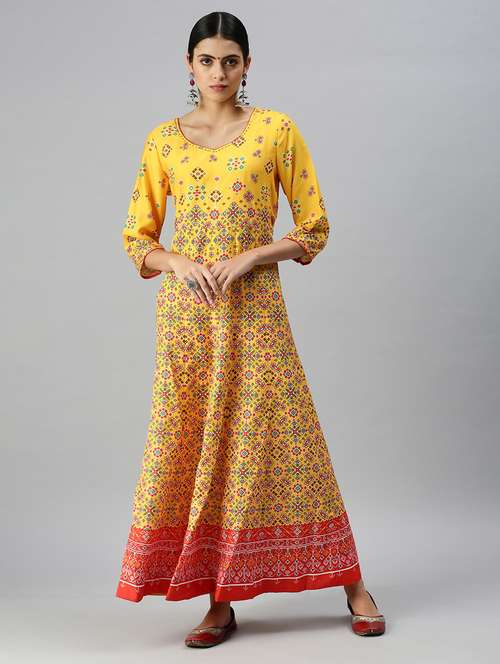 yellow cotton blend anarkali kurta - 18249307 - Very Small Image - 1