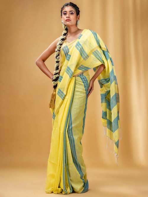 - » women striped handloom saree with blouse