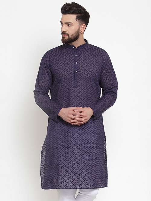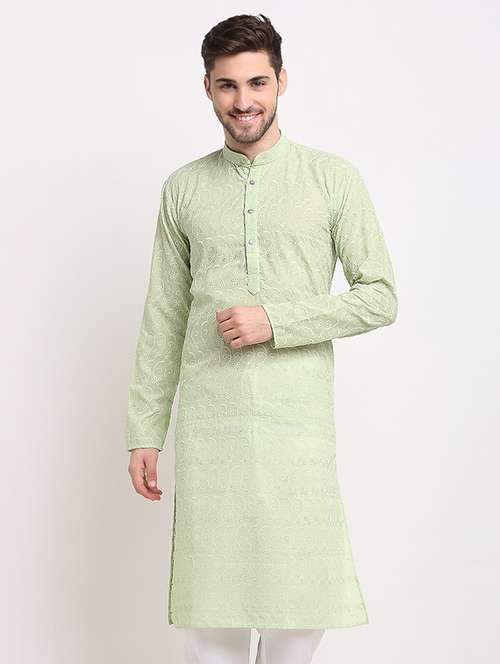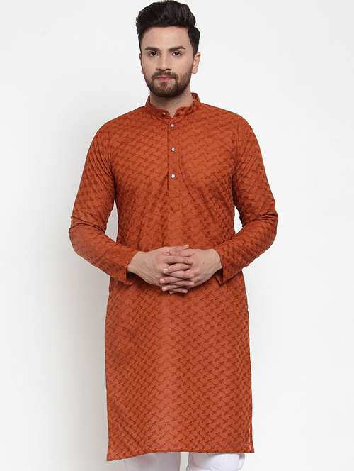 Mustard Yellow Cotton Embroidered straight kurta, has a mandarin collar, and straight hem