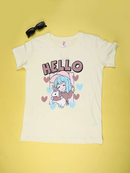 - » girls printed round neck t-shirt