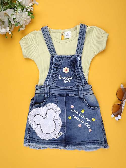 Printed Dungaree Set with round neck Romper