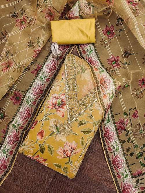 - Look ultra gorgeous in unstitched suits from Manvaa and grab these beautiful suits in yellow colour.