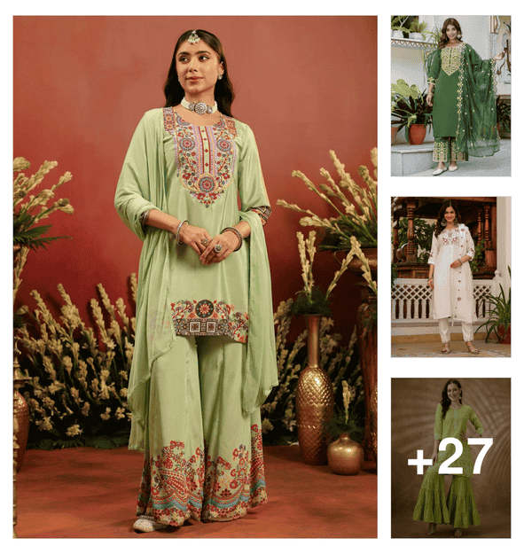women three quarter sleeve kurta palazzo set